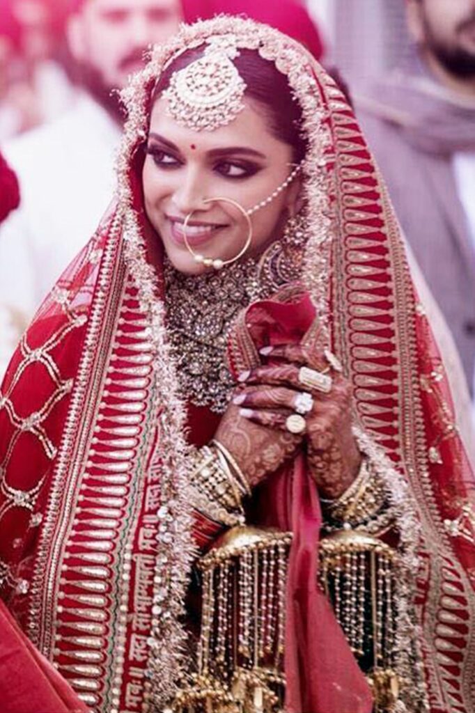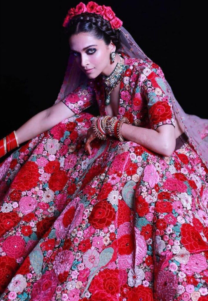 Deepika loved creations by the designer that she wore a lehenga by him for one of her wedding parties. With flowers in her hair and dark eye makeup, she channeled her inner Freida Kahlo with a bold yet striking look.